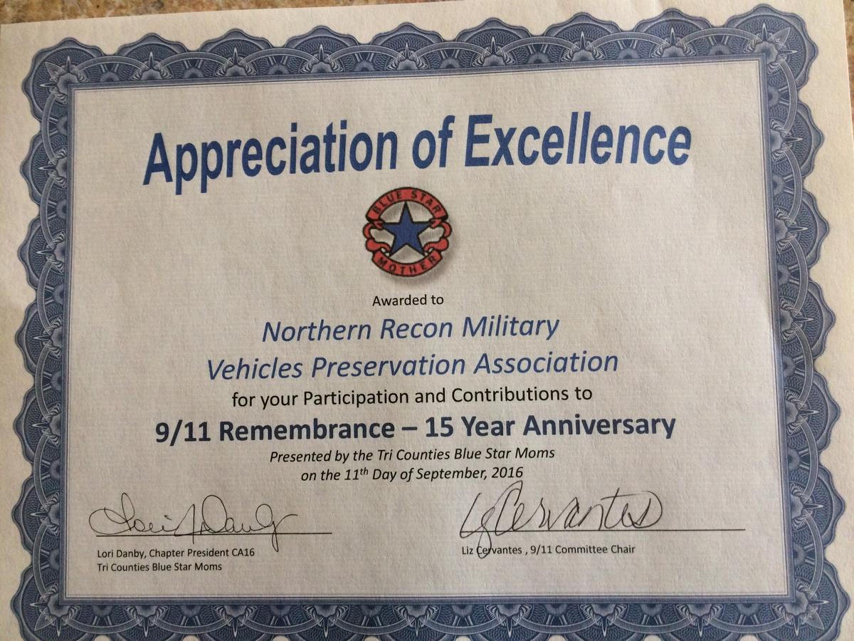 Blue Star Moms 9-11 Memorial Yuba City Sept. 2016
